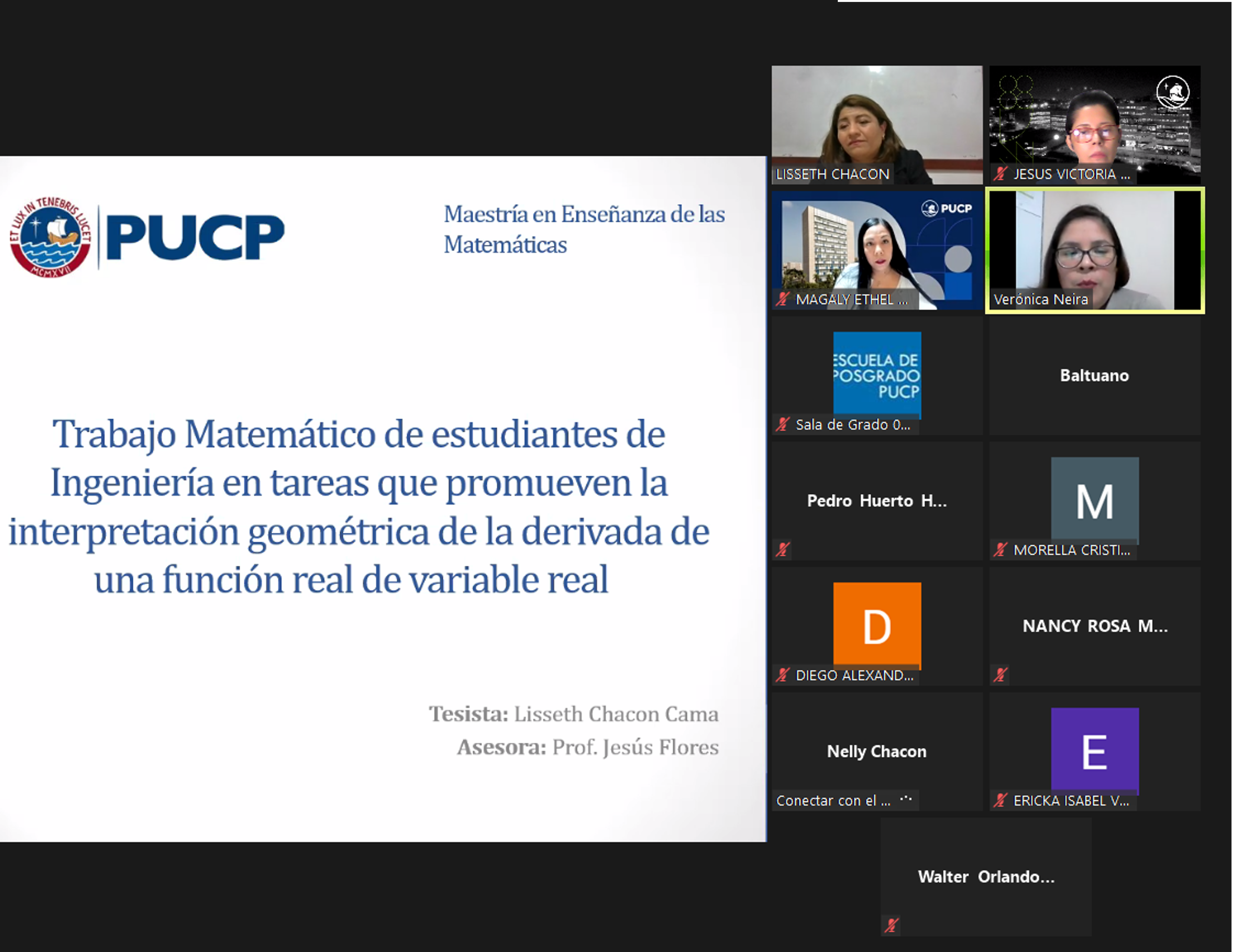 Magister Lisseth Chacón defiende tesis titulada "Trabajo Matemático de estudiantes de Ingeniería en tareas que promueven la interpretación geométrica de la derivada de una función real de variable real"